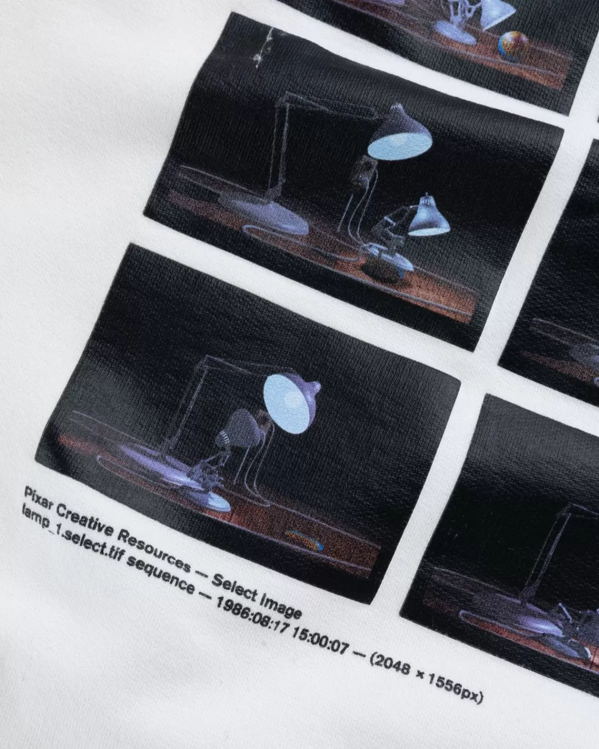 Onze Samenwerking Met Pixar Onderzoekt De Archiefgeschiedenis En Is Een Eerbetoon Aan De Voortdurende Innovatie Door De Jaren Heen. The Sequence Hoodie Bevat Scènes Uit De Korte Film Luxo Jr. (1986). De Zware Hoodie Is Afgewerkt Met Een Geweven Label Met Co-Branding Op De Borst En Heeft Geribde Manchetten En Zoom.