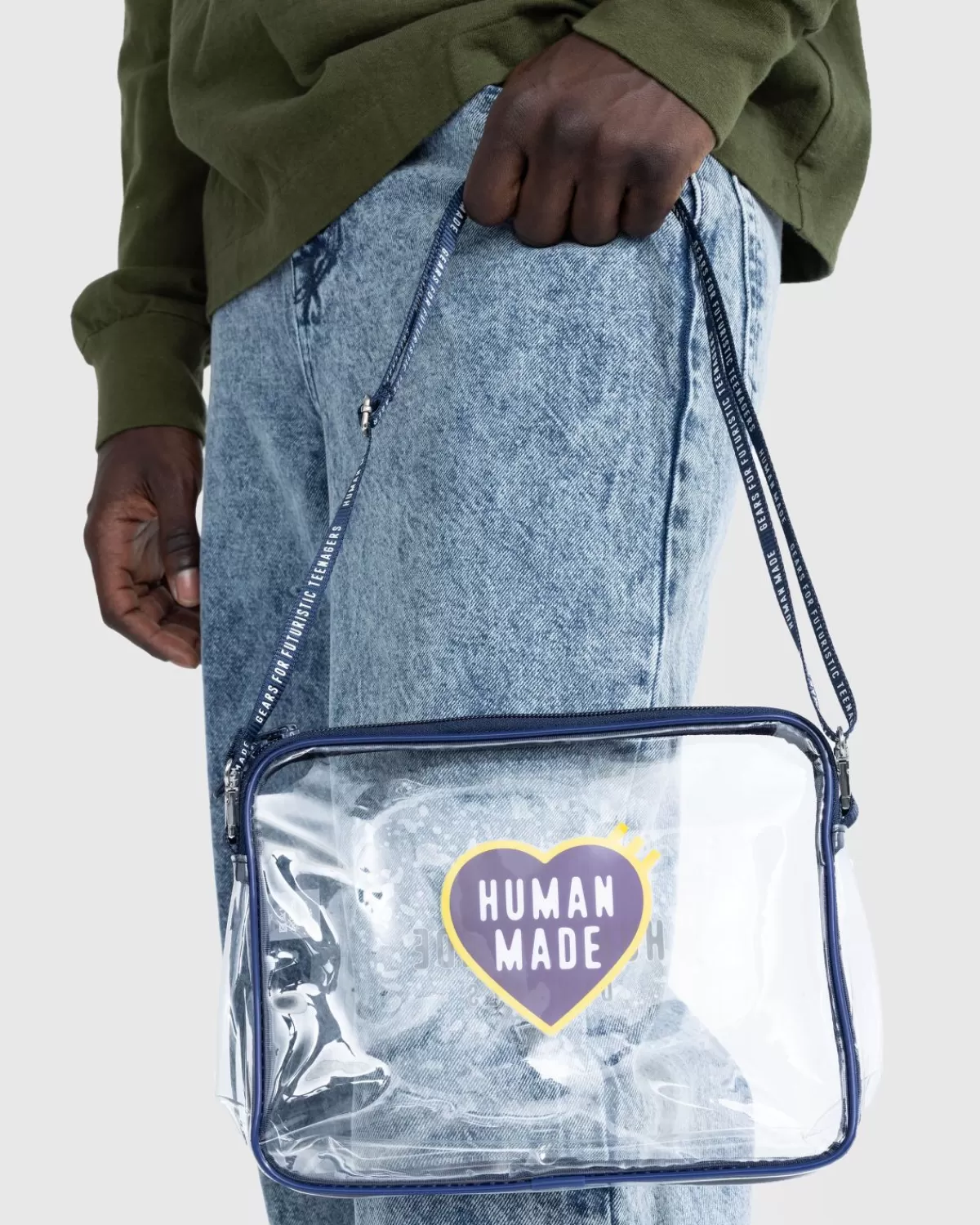 Het Pvc-Zakje Van Human Made Is Een Doorzichtige Bagage-Stijl Waarmee U De Inhoud Van Het Accessoire Kunt Zien. Het Is Uitgerust Met Een Dubbele Ritssluiting Aan De Bovenkant En Is Aan Beide Zijden Van Het Zakje Verfraaid Met Human Made-Iconografie. De Tas Wordt Geleverd Met Een Afneembare Nylon Riem Met Merklogo, Waarmee Je Hem Op Verschillende Manieren Kunt Dragen.