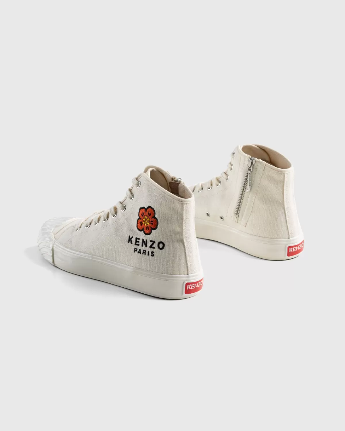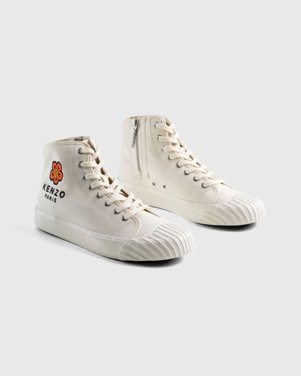 Deze Hoge Sneaker Is Versierd Met De Iconische Boke-Bloem, Een Knipoog Naar De Verbinding Tussen Het Erfgoed Van Artistiek Directeur Nigo En De Kenmerkende Klaproos Van Het Huis. Naast Het Bloemenborduurwerk Aan De Zijkant Van De Schoen, Is Het Silhouet Verfraaid Met Kenzo Paris-Borduurwerk Net Daaronder, Evenals Een Extra Merklogo Op De Hiel. De Sneaker Heeft Een Vintage Look En Is Gedetailleerd Met Een Geribbelde Teenbumper, Terwijl Hij Is Voorzien Van Een Traditionele Vetersluiting En Een Ritssluiting Aan De Mediale Zijde. Het Ontwerp Wordt Compleet Gemaakt Met Een Militair Geïnspireerde Dogtag Die Aan Het Bovenste Oogje Is Bevestigd.