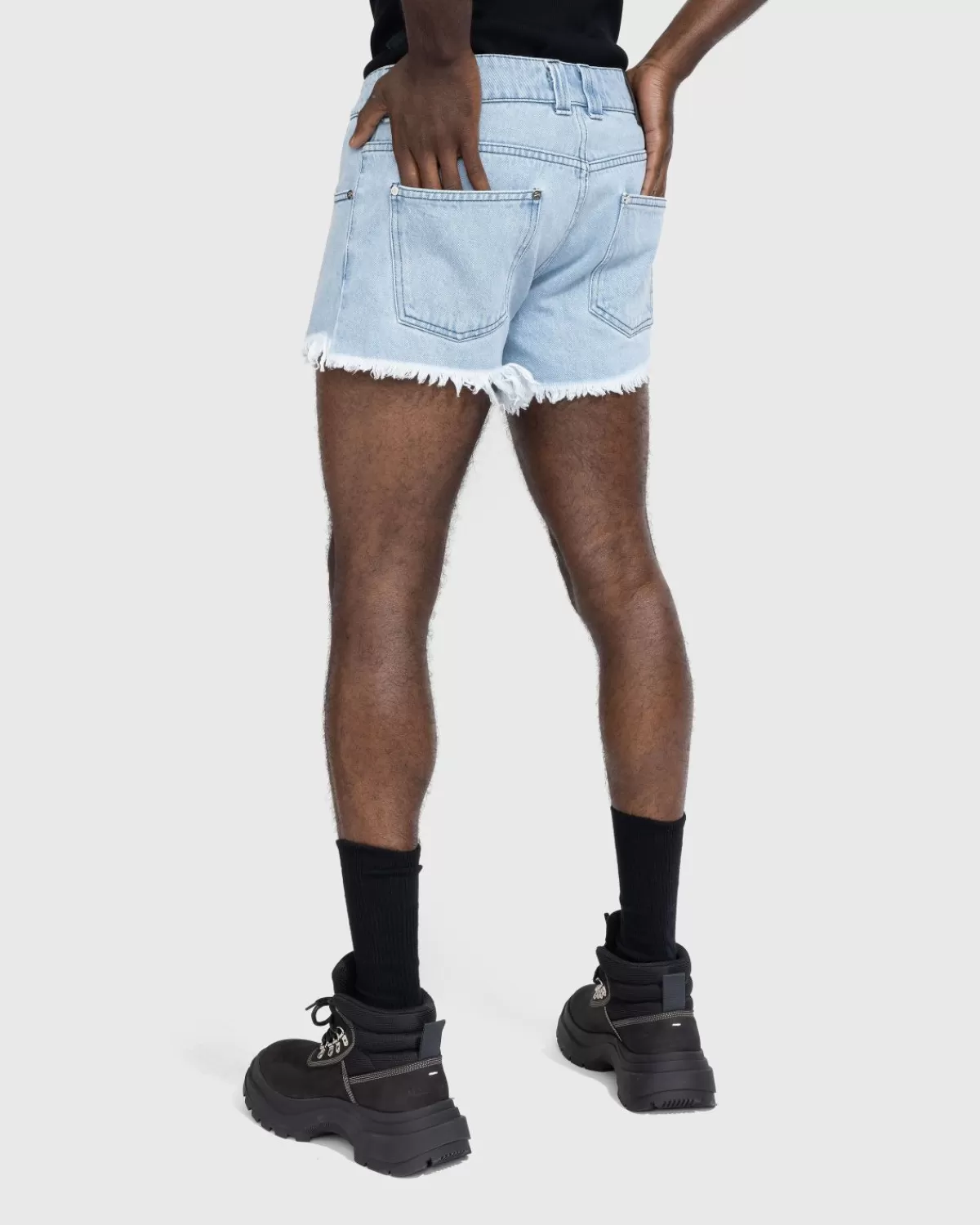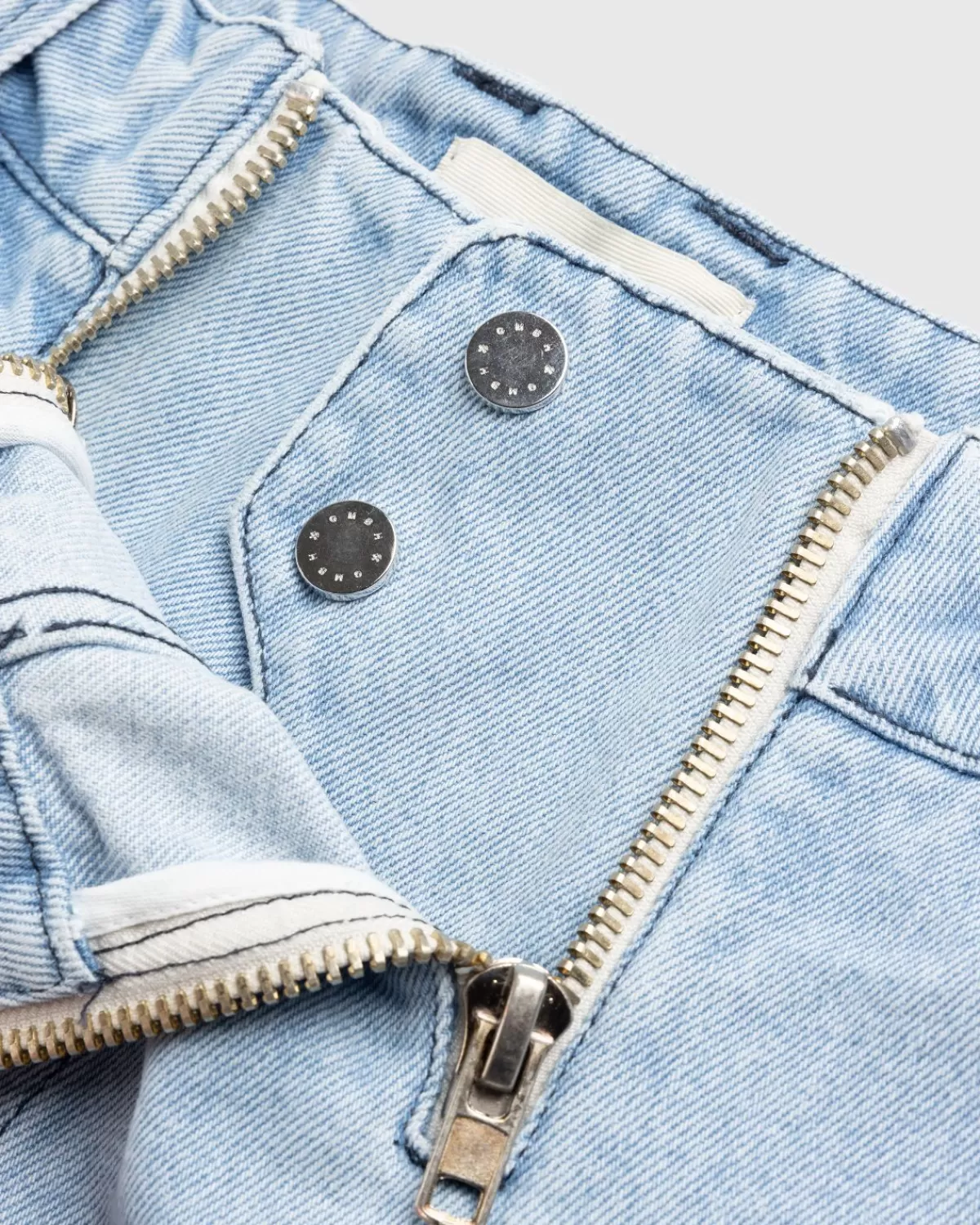 Gmbh Rafelt De Zoom Van De Klassieke Denimshort Voor Het Nieuwe Seizoen. Het Uniseks Model Heeft Een Lichte Indigo Wassing En Is Gemaakt Van 100% Biologisch Katoen. Het Paar Heeft Een Traditionele Vijfpocketstyling En Wordt Gedefinieerd Door De Kenmerkende Dubbele Ritssluitingen Van Het Merk, Verwerkt Aan De Voorkant Van Het Silhouet. Op De Achterkant Van De Taille Is Een Leren Logopatch Aangebracht Om Het Kledingstuk Te Markeren.