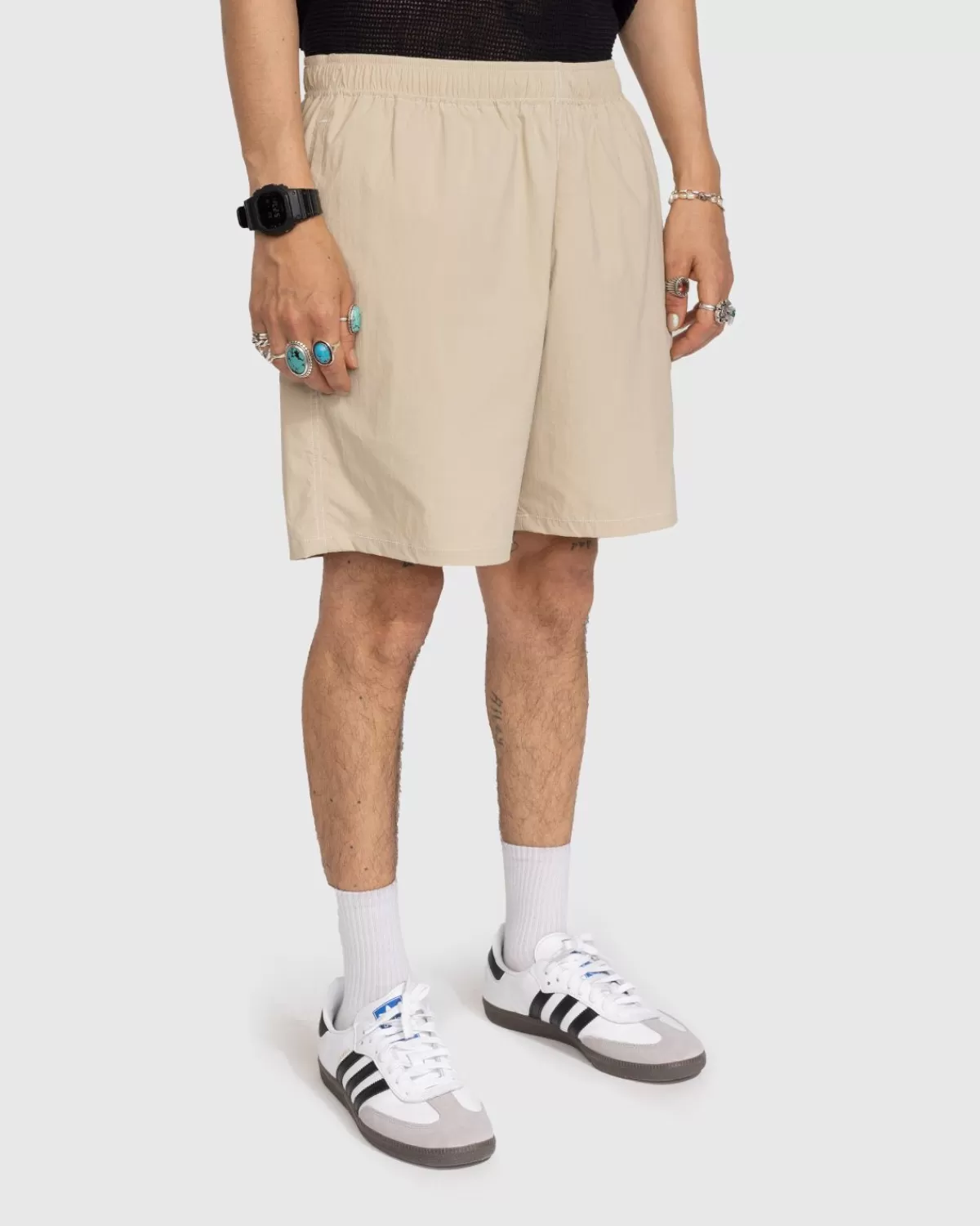 Deze Casual Halflange Short Is Gemaakt Van Een Lichte, Japanse Nylonstof Die Wordt Geaccentueerd Door Witte Contrasterende Stiksels. Op Het Linkerbeen Bevindt Zich Een Cargozak Met Ritssluiting, Terwijl Het Rechterbeen Een Achterzak Met Ritssluiting Heeft Met Highsnobiety-Vlaglabel, Die Beide Extra Draagruimte Bieden. Een Elastische Taille Met Intern Trekkoord Verbetert Het Algehele Comfort En Zorgt Ervoor Dat Je De Juiste Pasvorm Kunt Kiezen.