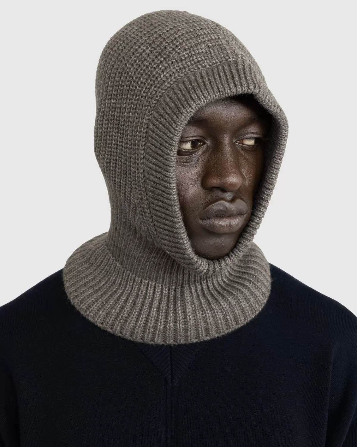 De Bivakmuts Is Het Favoriete Winteraccessoire Van De Mode Geworden, Geschikt Om Je Outfits Bij Koud Weer Naar Een Hoger Niveau Te Tillen En Je Daarbij Natuurlijk Warm Te Houden. Deze Nieuwe Seizoensuitvoering Van Lemaire Komt In Een Neutrale Grijze Kleurstelling, Gemaakt Van Een Gezellige Mix Van Alpaca En Merinowol. Het Heeft Een Grote Gezichtsopening En Is Gedetailleerd Met Een Ribgebreide Rand.