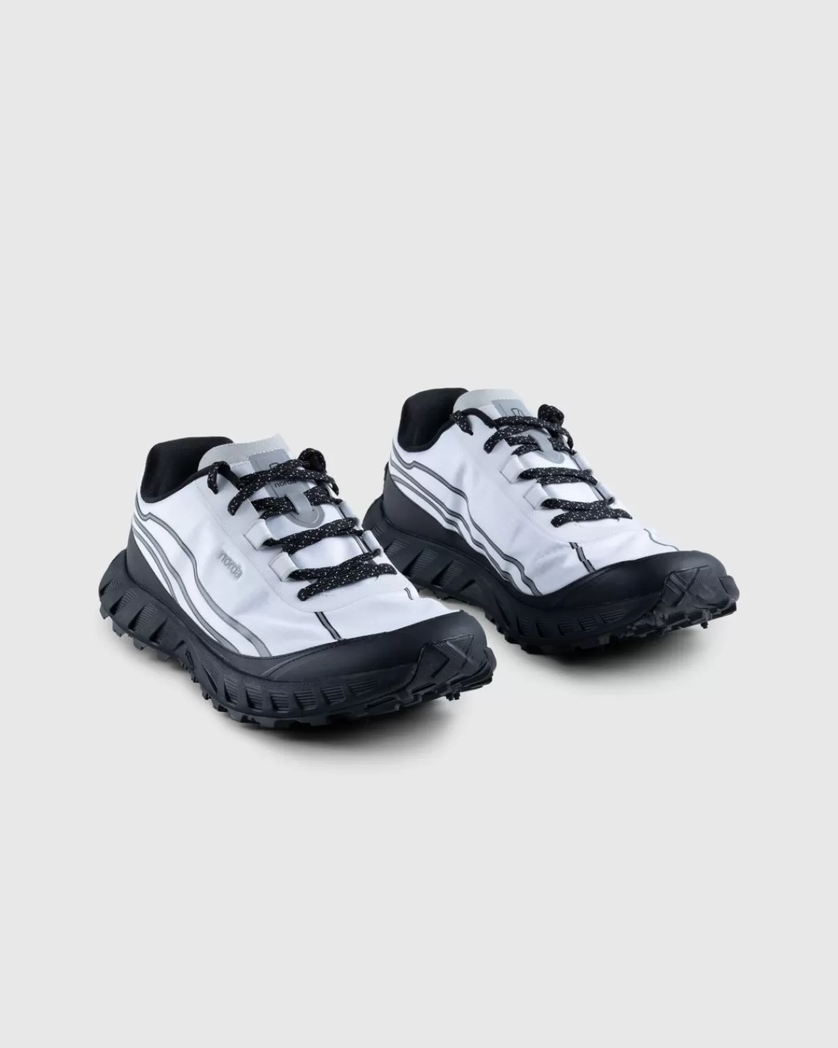 Na Het Debuut Van Zijn Eerste Hardloopsilhouet Keert Norda Terug Met De 002, Die Het Toch Al Goed Presterende Ontwerp Verbetert. Het Naadloze En Waterbestendige Bio-Dyneema-Bovenwerk Blijft Intact En Biedt Een Uitzonderlijk Lichtgewicht Gevoel En Biedt Slijtvastheid Dankzij De Ripstop-Mogelijkheden. Er Is Een Bijgewerkte Stapelhoogte Toegevoegd Aan De Vibram Megagrip-Buitenzool Die Wordt Geleverd Met Duurzame Nokken Om Tractie Op Verschillende Terreinen Te Ondersteunen. Overal In De Schoen Zijn Opvallende Reflecterende Details Te Vinden Voor 360 Graden Zichtbaarheid, Terwijl Een Gewatteerde Hielkraag En Piramidevormige Tussenzool Het Comfort Op En Naast De Paden Bevorderen.