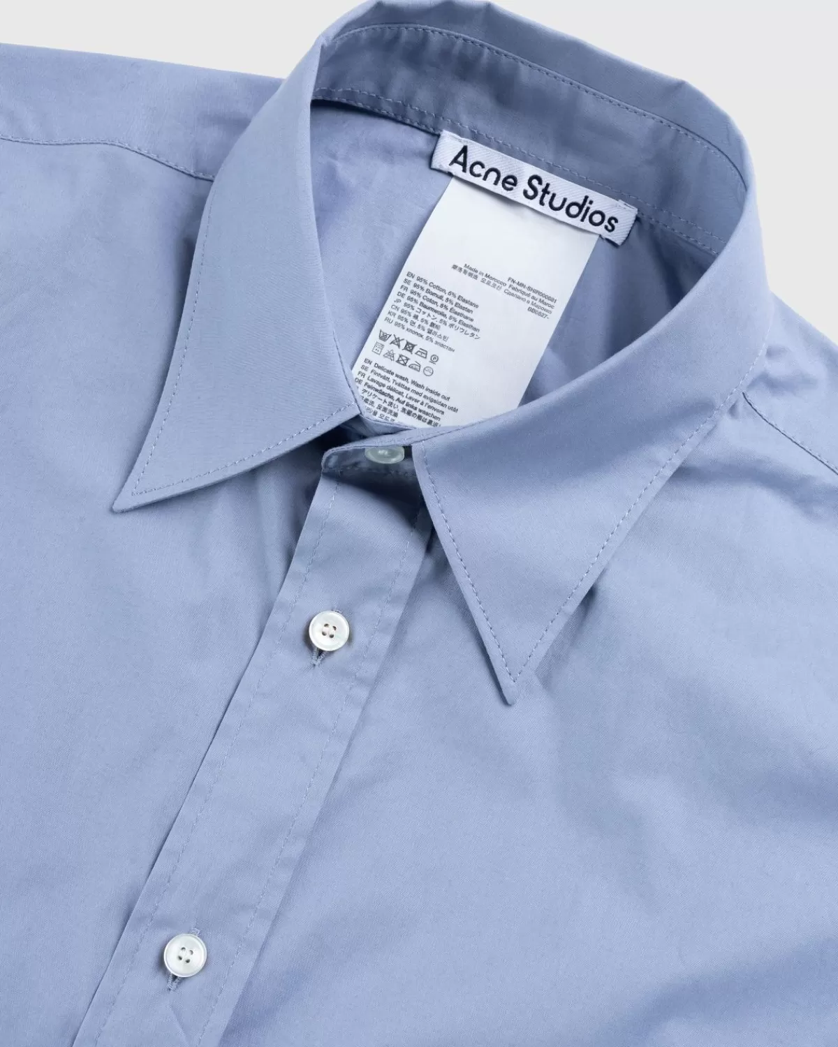 De Button-Up Met Korte Mouwen Van Acne Studios Is Een Verhoogde Versie Van Een Standaardstijl En Komt Dit Seizoen Uit In Een Uitnodigende Lichtblauwe Kleurstelling. Het Is Gemaakt Van Geweven Katoen En Heeft Een Traditionele Knoopsluiting Aan De Voorkant En Een Puntige Kraag. Het Overhemd Heeft Een Relaxte Pasvorm Die Geschikt Is Voor Laagjes.