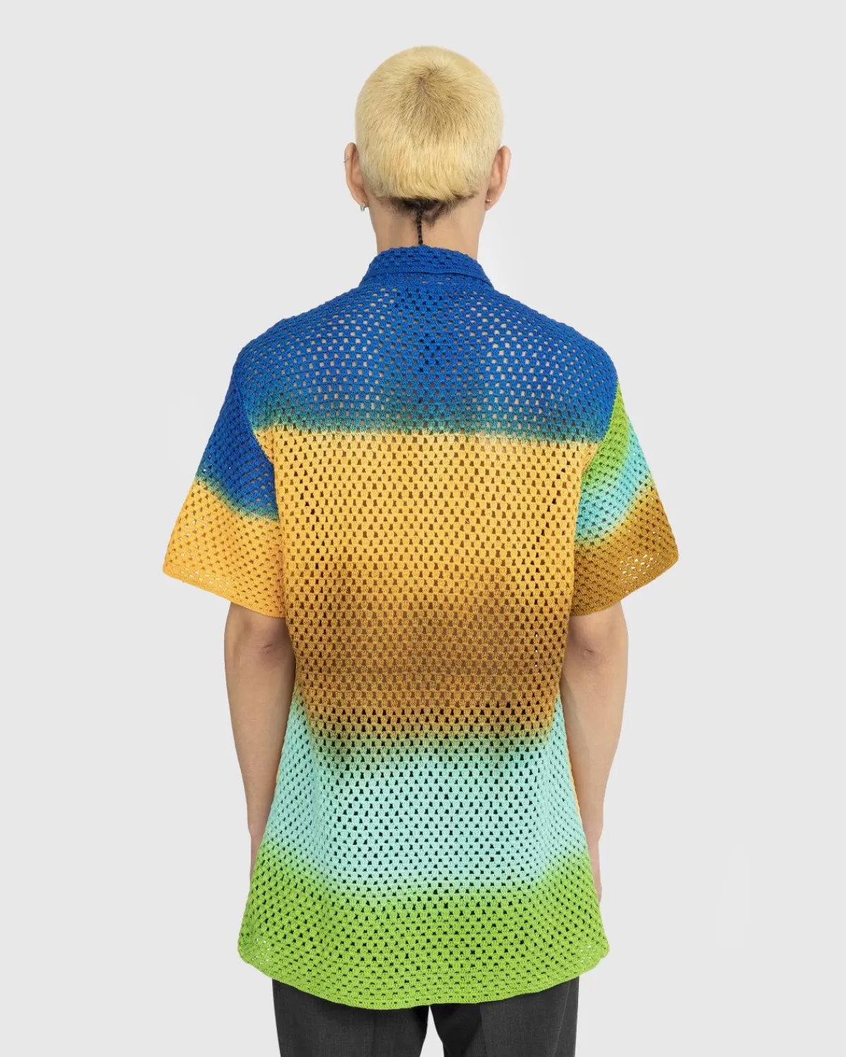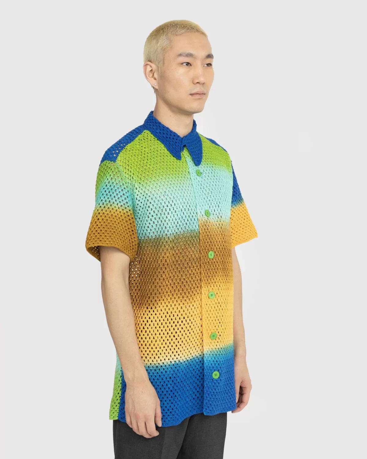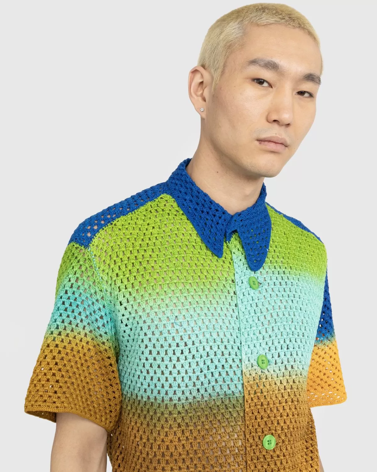 De Gedurfde Kleuren Van Het Wellness Shirt Zijn Gekozen Om Positieve Emoties Te Stimuleren En Het Mentale Welzijn Te Bevorderen. Je Nieuwe Zomertopje, Het Agr-Kledingstuk, Heeft Een Gedetailleerde Katoenen Gehaakte Constructie Die Een Semi-Doorzichtige Look Creëert, Met Een Boeiend, Handgeverfd Verloopontwerp. Meer Traditionele Ontwerpelementen Zijn Onder Meer Een Gespreide Kraag En Een Knoopsluiting Aan De Voorkant, Omdat Het Overhemd Een Licht Ontspannen Pasvorm Heeft Voor Een Comfortabeler En Tijdlozer Draagcomfort.
