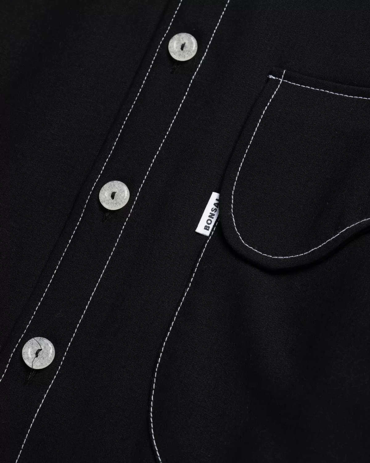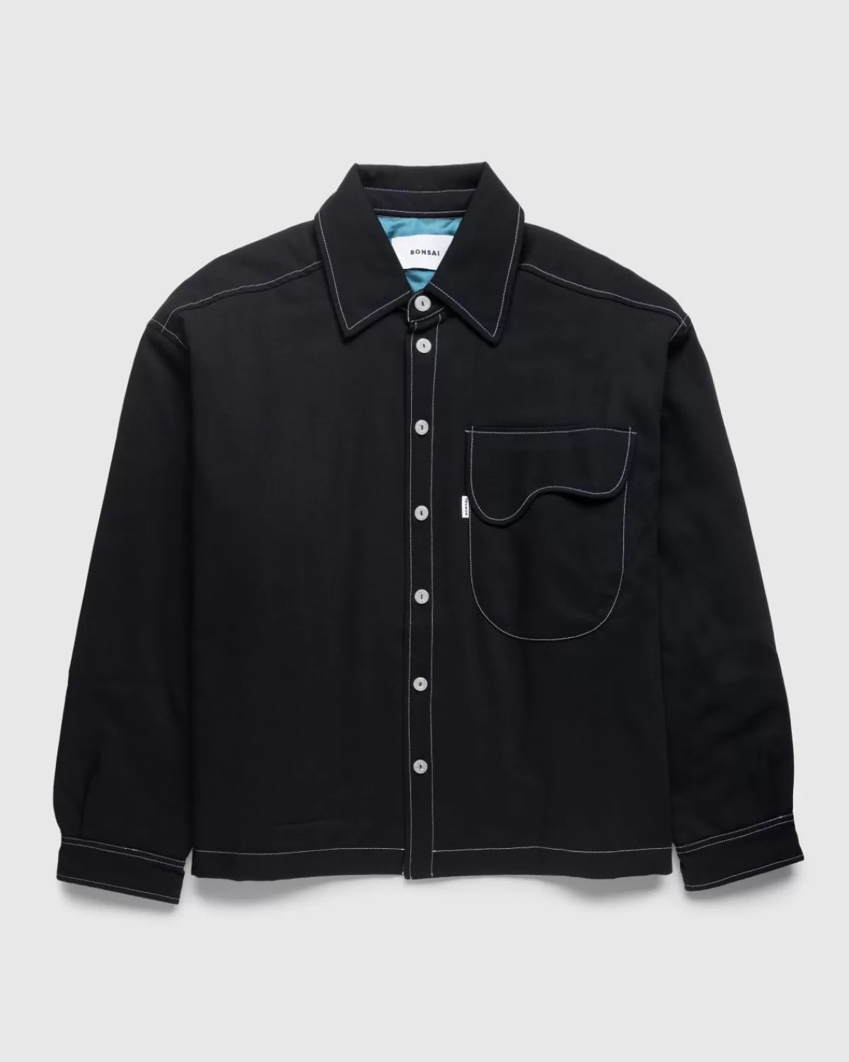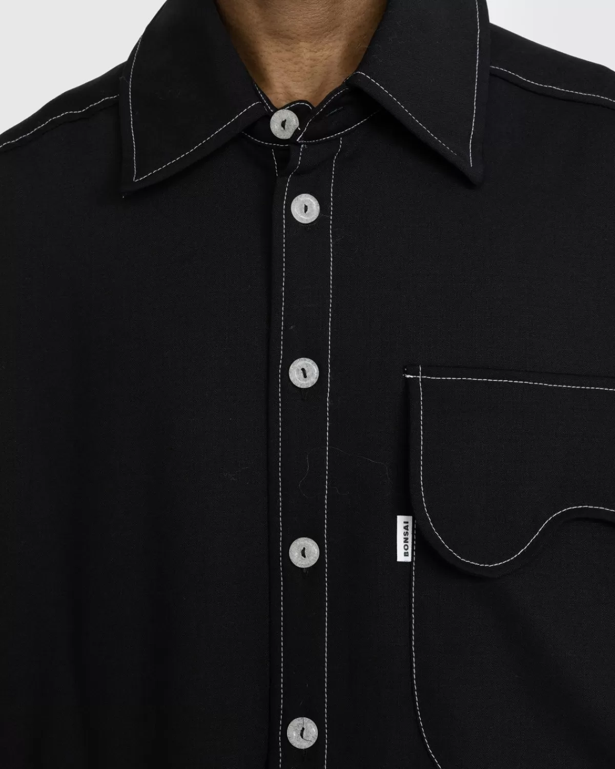 Deze Bonsai Button-Down Wordt Gekenmerkt Door Contrasterende Stiksels Die Door Het Hele Silhouet Zijn Doorgevoerd. De Stijl Is Gemaakt Van Een Scheerwolmix En Heeft Traditionele Designelementen Zoals Een Puntkraag, Knoopsluiting Aan De Voorkant En Manchetten Met Knopen. Op De Borst Is Een Opvallende Klepzak Verwerkt, Waar Ook Een Klein Logolabel Te Vinden Is.