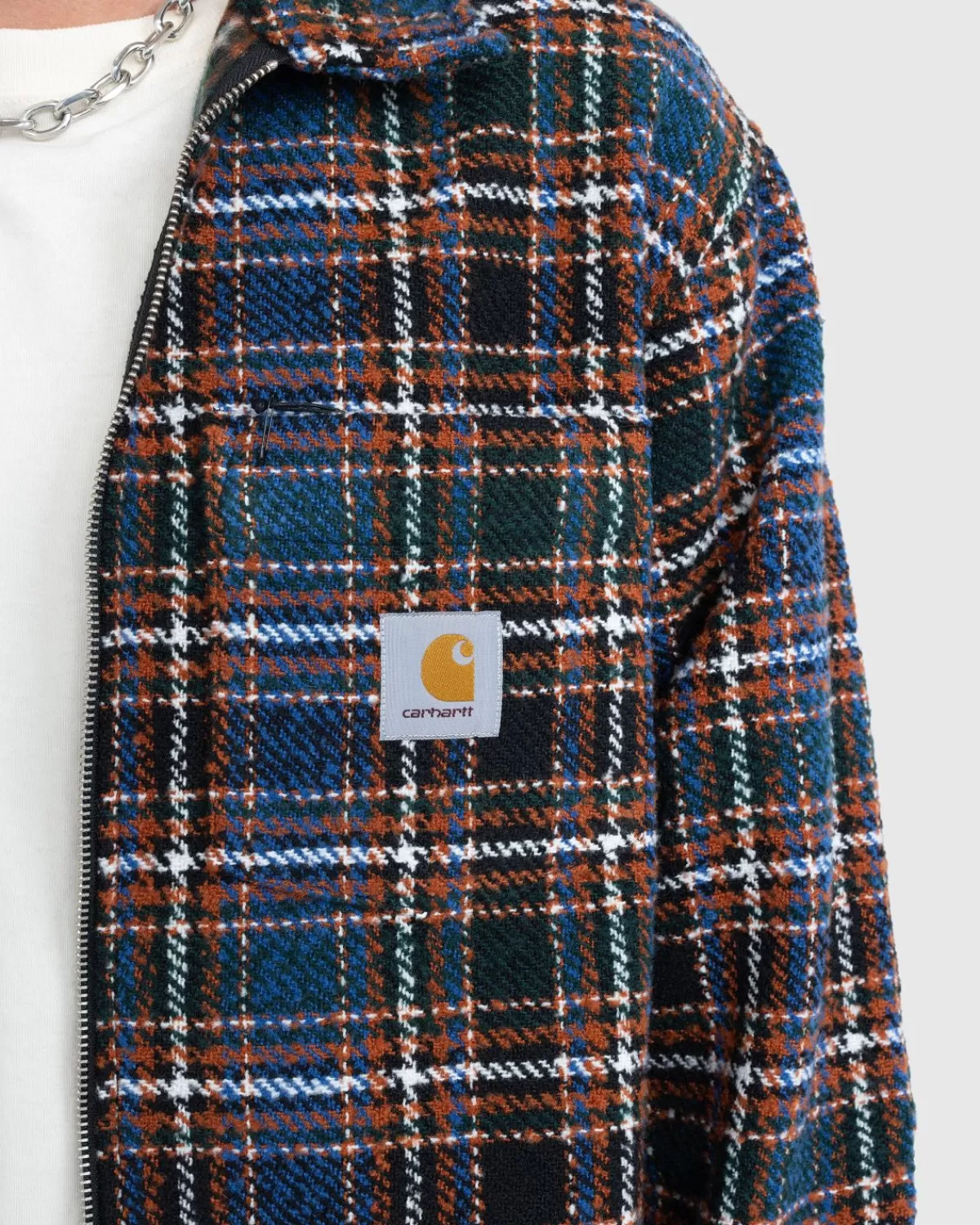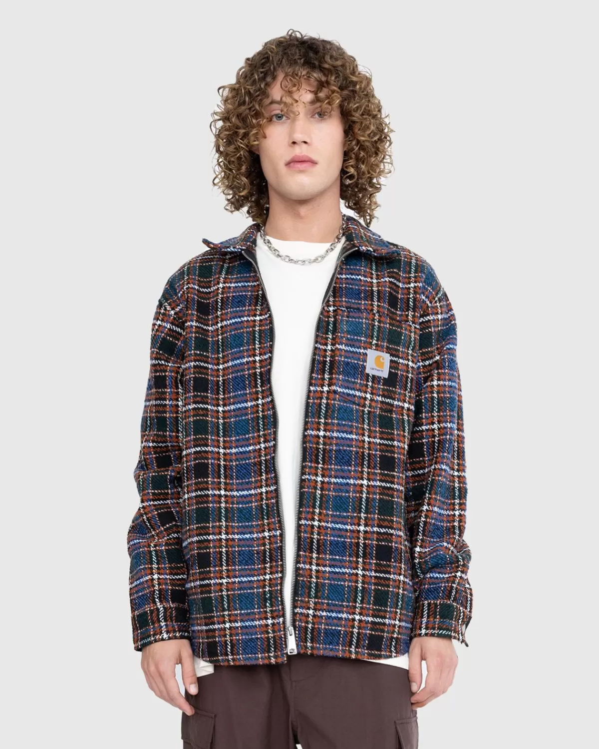 Het Stroy Shirt Jacket Komt Dit Seizoen Uit, Gemaakt Van Zwaargewicht Polyester In Een Voelbaar, Bouclé Twill-Weefsel. Het Heeft Een All-Over Ruitpatroon En Is Minimaal Voorzien Van Het Kenmerkende Vierkante Geweven Label Van Carhartt Op De Borst. Het Kledingstuk Is Vervolgens Uitgerust Met Een Metalen Knoopsluiting En Manchetten Met Knopen, Evenals Zakken In De Zijnaad En Een Enkele Borstzak.