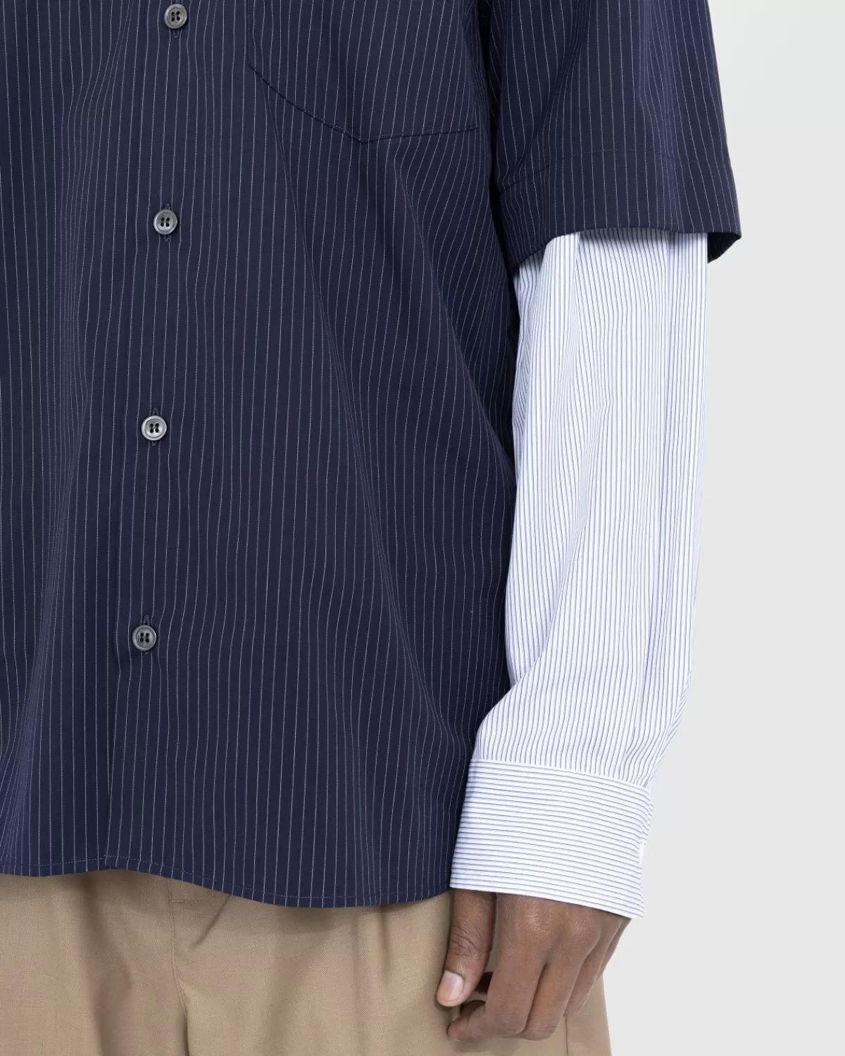 De Carle Is Een Onderscheidend Button-Down-Model Van Dries Van Noten, Dat Dit Seizoen Verkrijgbaar Is In Een Veelzijdige Marineblauwe Kleurstelling. Het Kledingstuk Is Gemaakt Van 100% Katoen En Wordt Gedefinieerd Door Contrasterende Dubbele Mouwen, Terwijl Het Een All-Over Krijtstreepontwerp Laat Zien. Het Overhemd Is Gedetailleerd Met Een Puntkraag, Manchetten Met Knopen En Één Borstzak, En Heeft Een Losse Pasvorm Voor Extra Draagcomfort.