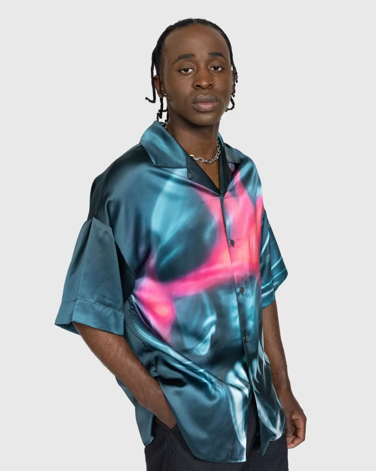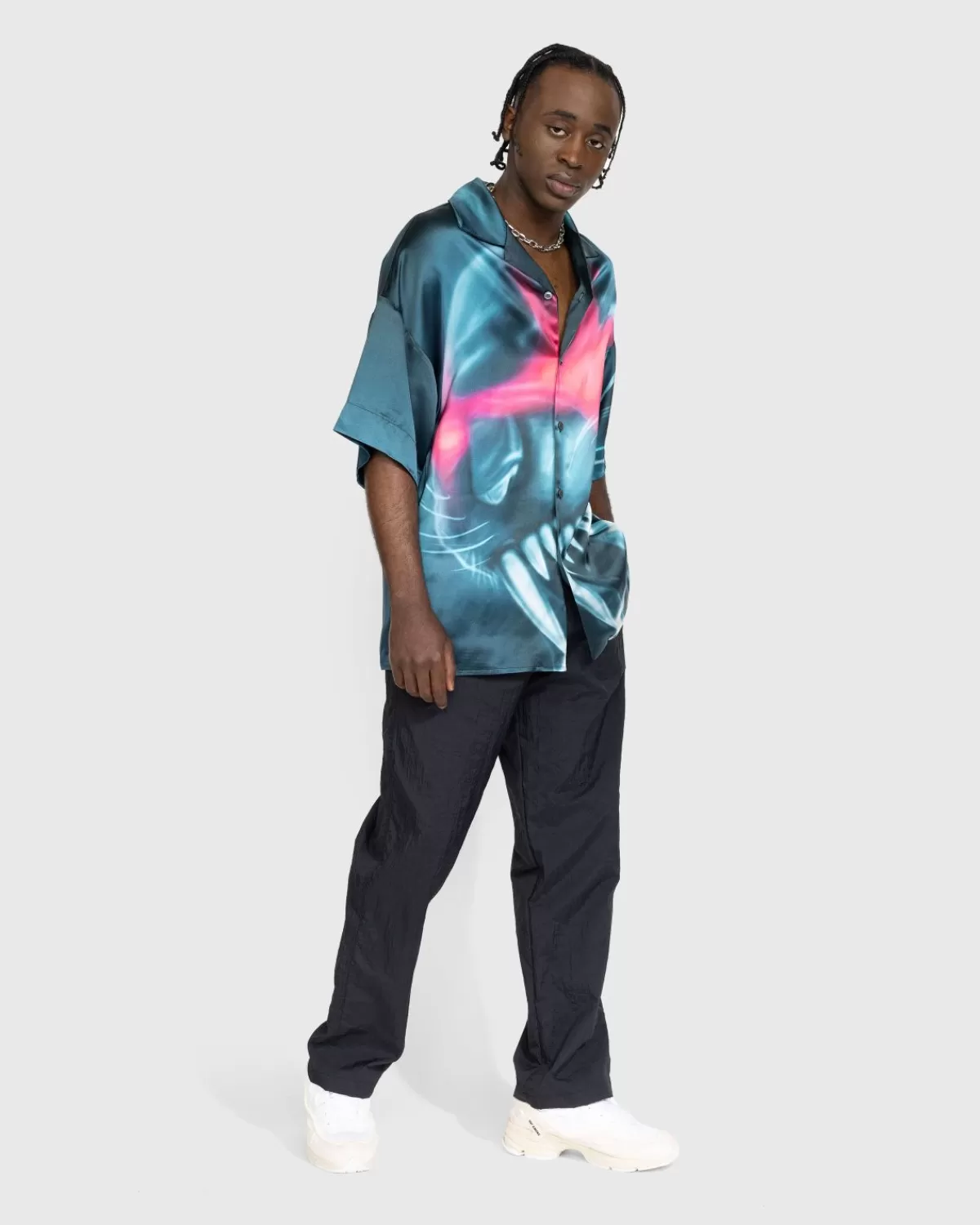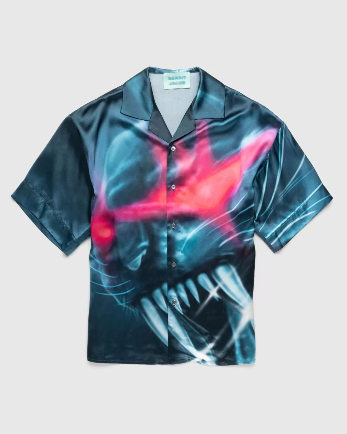 De Collectie ‘Raised By Wolves’ Van Gerrit Jacob Is Een Ode Aan Visuele Verhalen En Is Geïnspireerd Op Zijn Geboortestad En Beeldend Kunstenaar Jim Goldberg. Het Satijnen Overhemd Is Gedetailleerd Met Unieke Geprinte Airbrush-Graphics En Is Afgewerkt Met Een Klassieke Gespreide Kraag.
