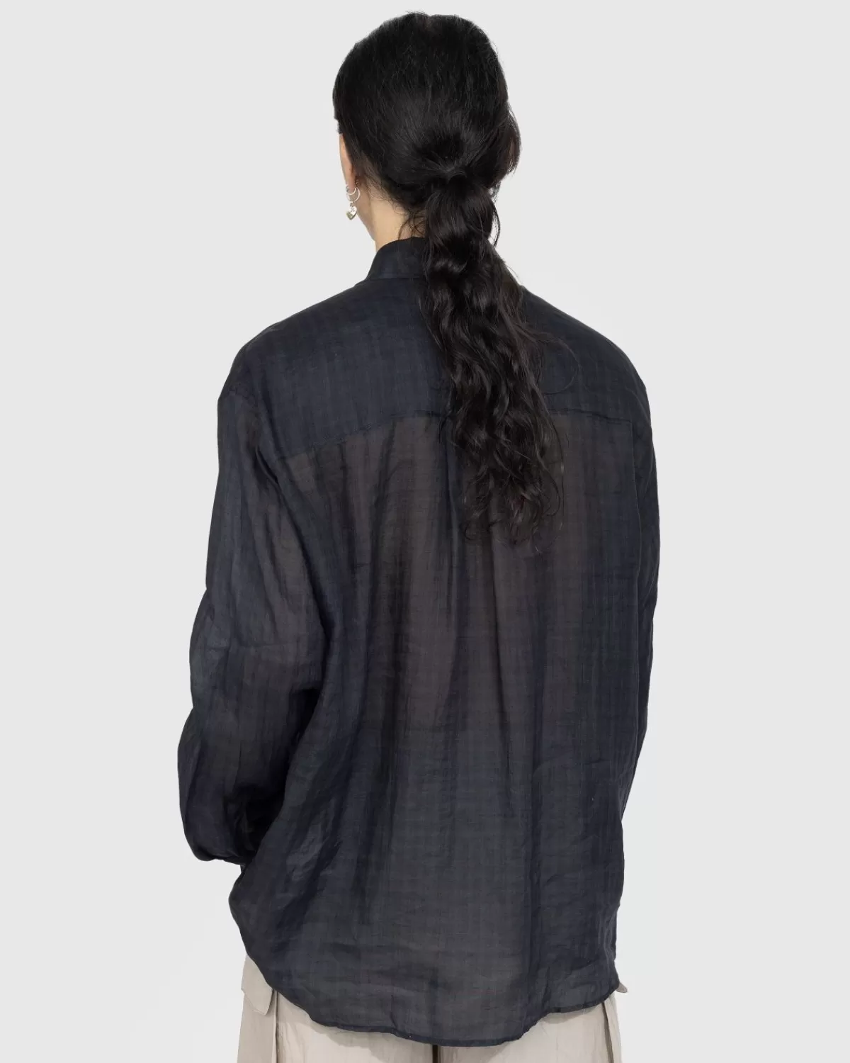 Het Bovenstaande Shirt Is Gemaakt Van Een Pure Italiaanse Ramee-Stof, Een Duurzaam Alternatief Voor Zijde. Het Heeft Een Iets Oversized Pasvorm En Is Gedetailleerd Met Parelmoeren Knopen, Verstekmanchetten En Een Gebogen Zoom, Met Een Ingebouwde Zak Op De Linkerborst.