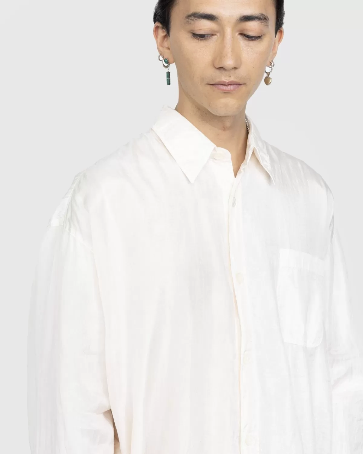 Ons Legacy’S Darling Shirt Komt Dit Seizoen Uit In Champagnekatoenzijde, Gemaakt Van Een Delicate Italiaanse Katoen- En Zijdemix. De Button-Down Heeft Een Relaxte, Langwerpige Pasvorm En Is Gedetailleerd Met Parelmoeren Knopen, Hoge Zijsplitten En Een Verlaagde Staart, Met Een Ingebouwde Zak Op De Linkerborst. Op De Achterkant Van De Kraag Verschijnt Een Klein Our Legacy-Label Om Het Silhouet Subtiel Te Markeren.