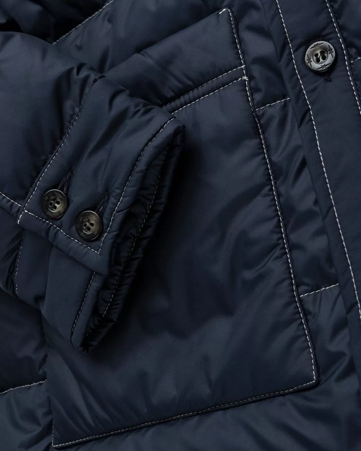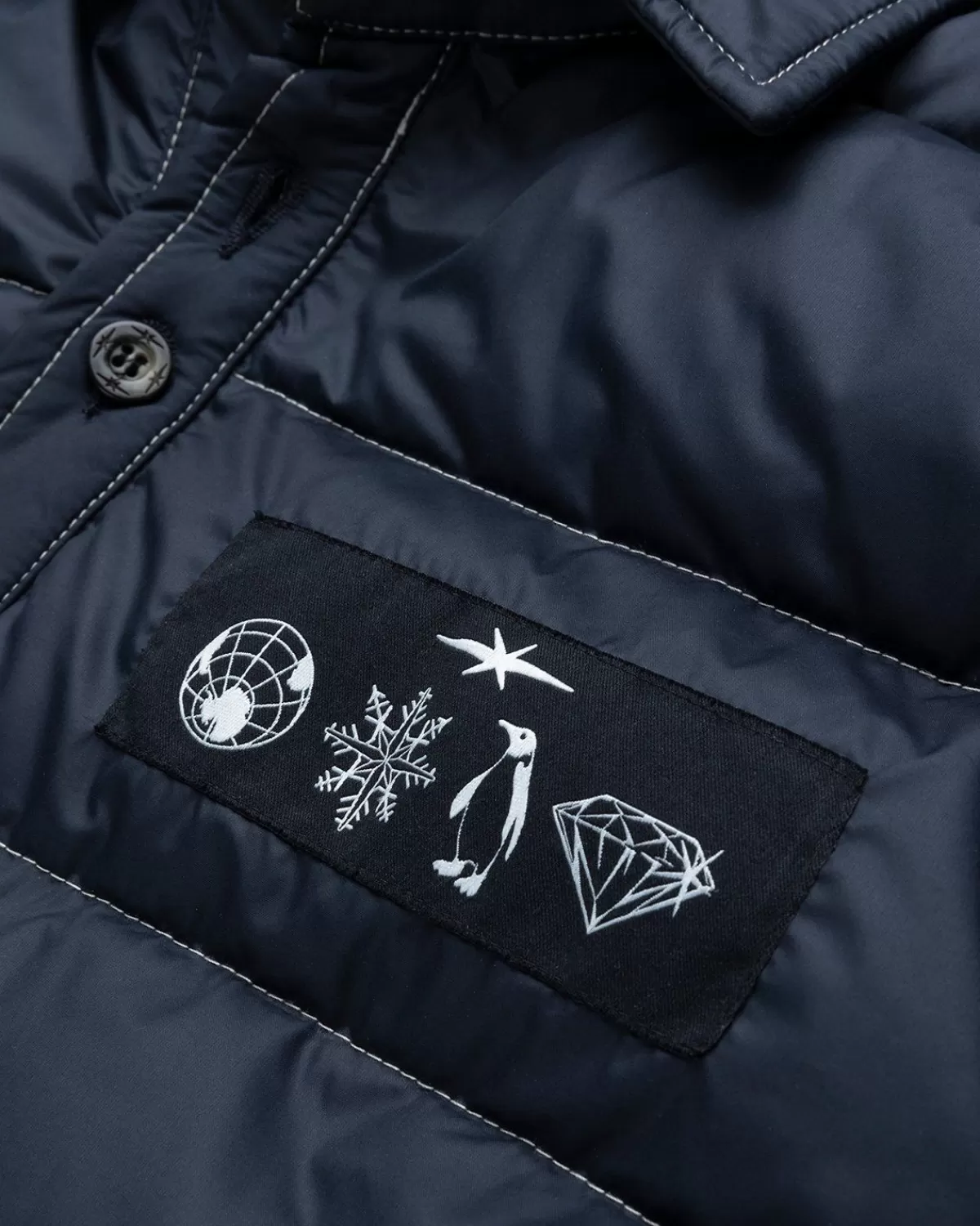 De Puffer, Een Basisstuk Bij Koud Weer, Is De Afgelopen Jaren Van Favoriete Outdoorjas Uitgegroeid Tot Een Streetwear-Favoriet. Voor Aw21 Levert Phipps Een Op Werkkleding Geïnspireerde Kijk Op Het Iconische Bovenkledingstuk: Maak Kennis Met Het Doudoune-Shirt. Het Kledingstuk Is Gemaakt Van Gerecycled Polyester En Gevuld Met Upcycled Donsveren, Terwijl Het Door Spencer Phipps Geleide Merk Het Concept Van Duurzaamheid En Ecologische Verantwoordelijkheid Met Betrekking Tot Stijl Blijft Onderzoeken. De Doudoune Is Aanzienlijk Licht, Heeft De Proporties Van Een Overshirt En Is Uitgerust Met Brede Opgestikte Zakken En Het Phipps-Seizoensgebonden Hiërogliefembleem Op De Borst.
