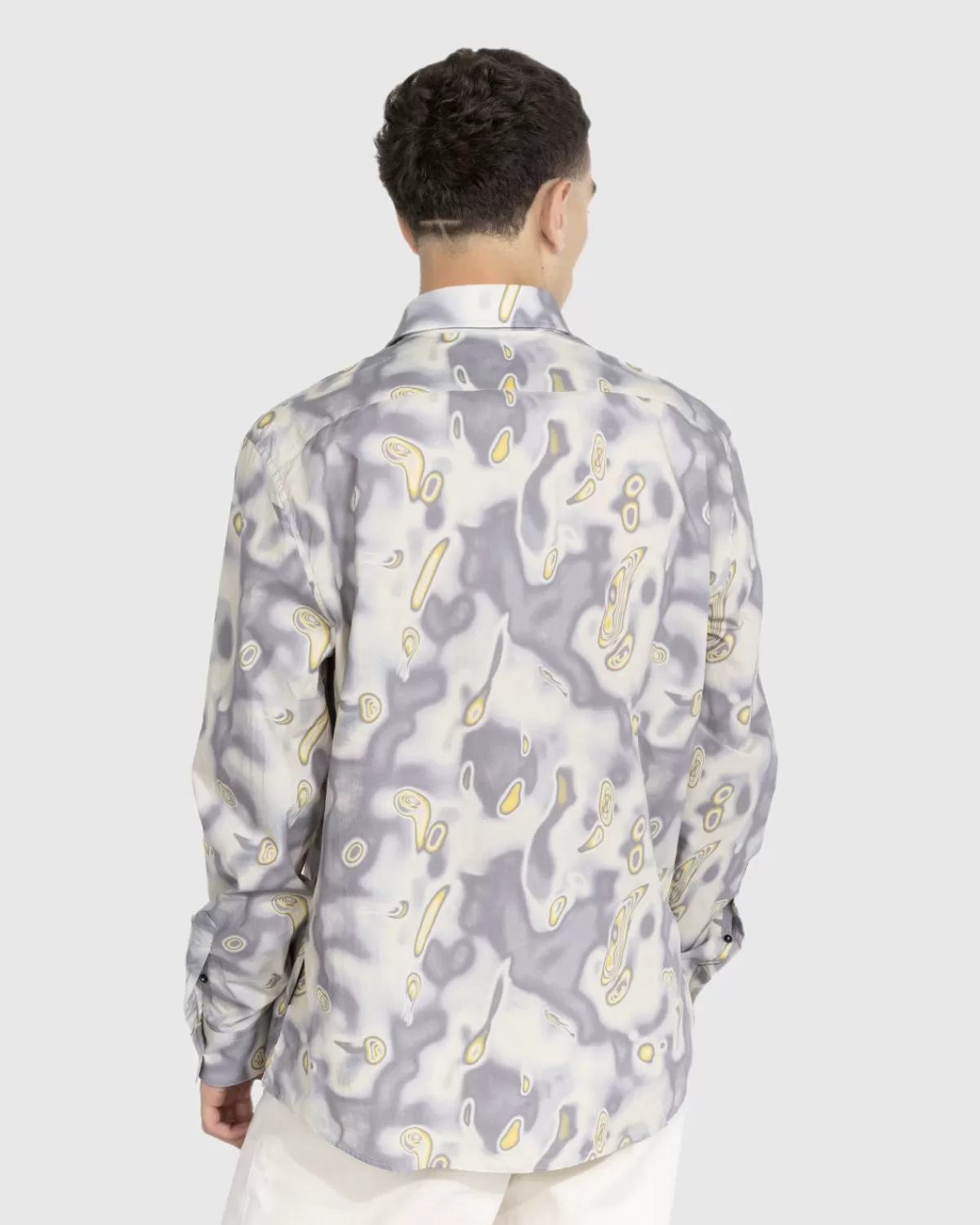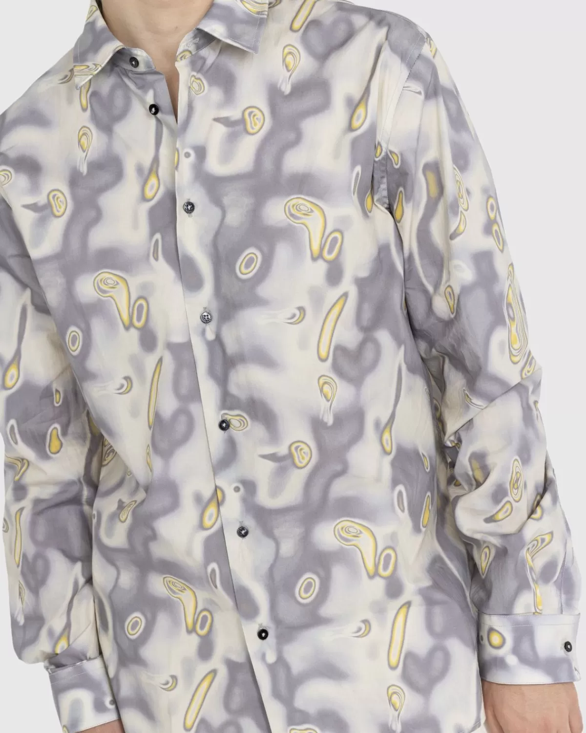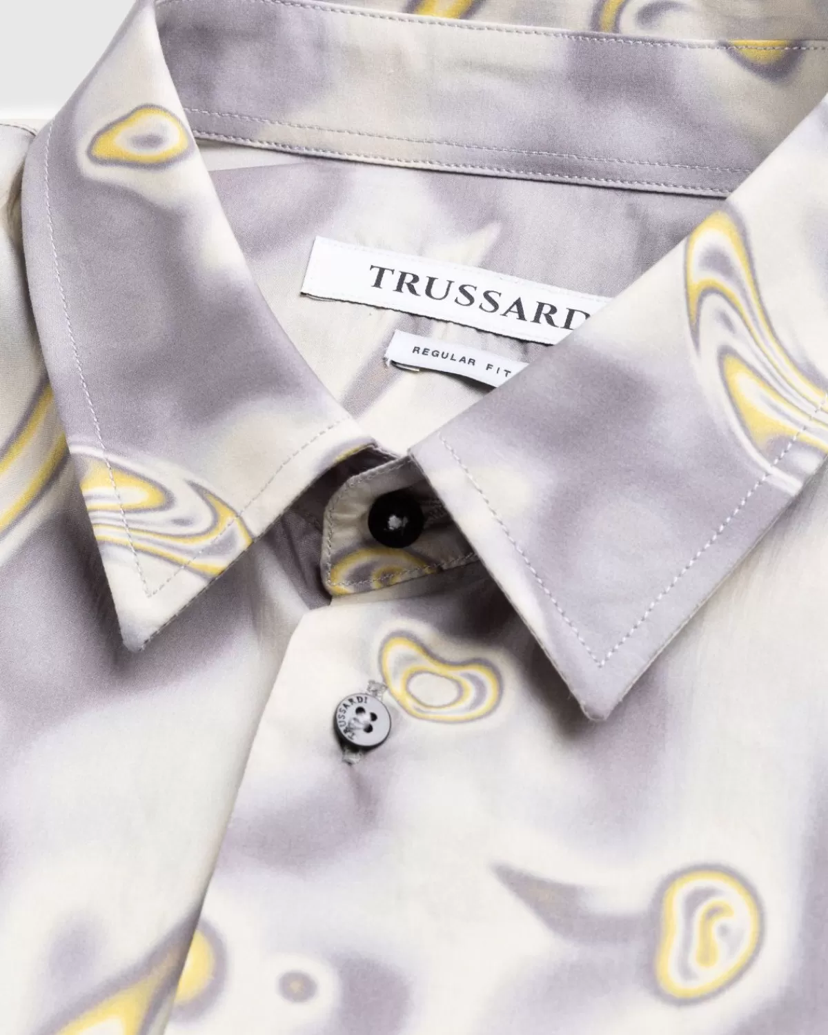 Trussardi’S Vermogen Om Tijdloze Silhouetten Te Voorzien Van Nieuwe, Opvallende Ontwerpen Komt Volledig Tot Uiting In Het Heat Map Print-Shirt Van Dit Seizoen. Dit Kledingstuk Heeft Een Standaardpasvorm Met Een Psychedelische, Bijna All-Over Digitale Print Die Lijkt Op Camouflage En Heeft Een Klassieke Puntige Kraag Met Overal Contrasterende Knopen.