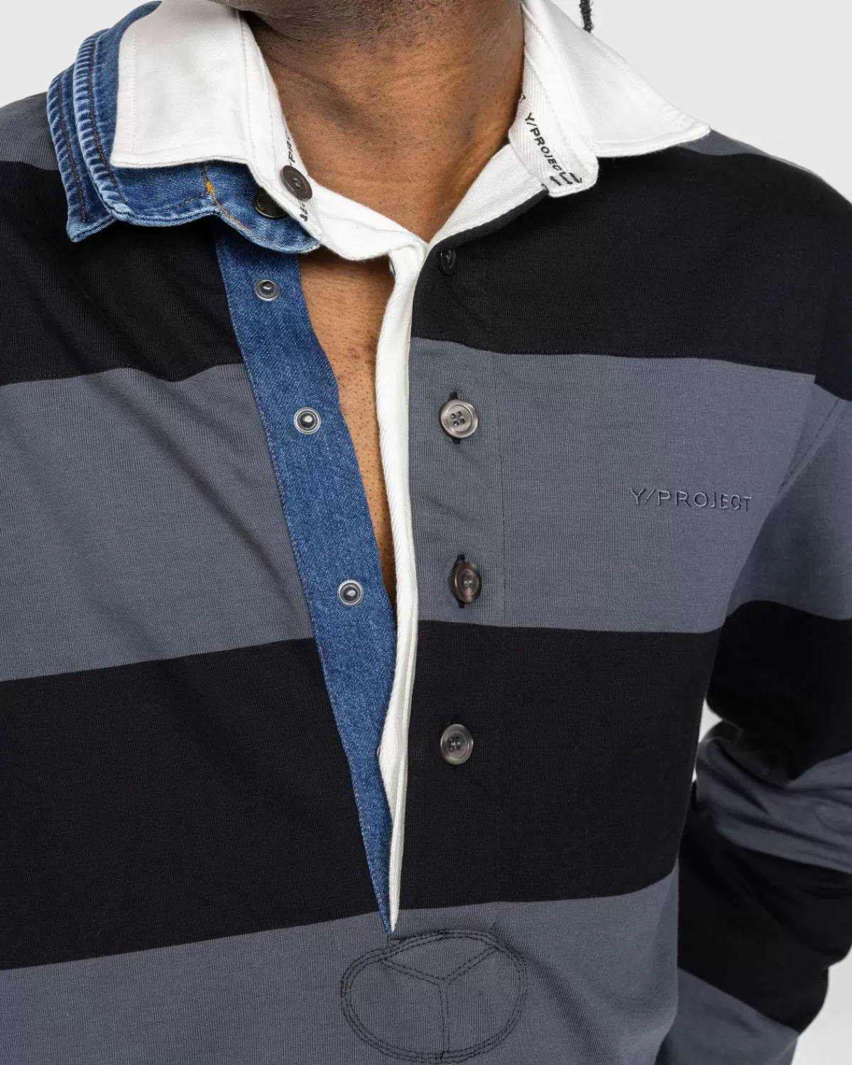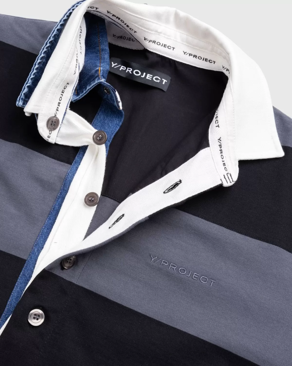 Overhemden^Y/Project Rugbypolo Met Drie Kraagjes, Zwart/Grijs
