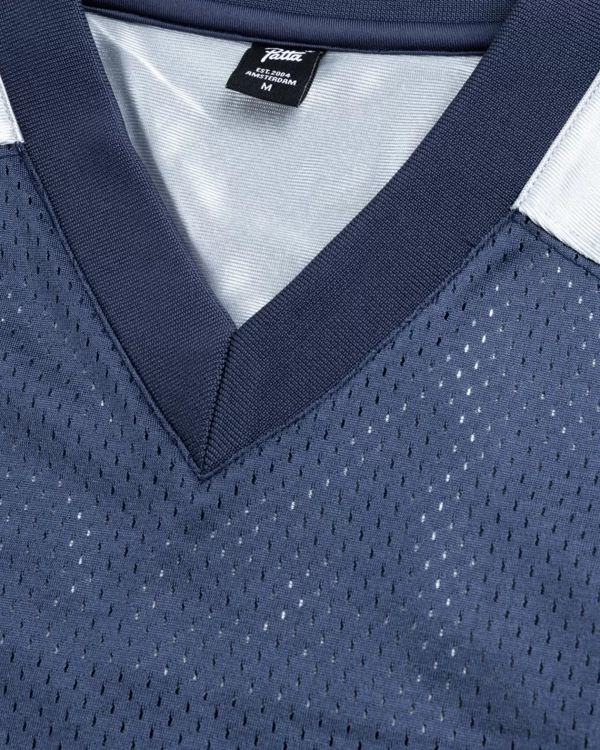 Sportkleding Ontmoet Streetwear Met Patta’S Respect Voetbalshirt. Het Oversized Kledingstuk Is Voornamelijk Gemaakt Van Ademend Polyester Mesh Met Stretch Nylon Panelen Aan De Zijkanten. Applique Patta-Branding Is Aangebracht Op De Voorkant Van Het Silhouet, Terwijl Sterren Op De Schouders Zijn Verwerkt. Het Stuk Is Afgewerkt Met Een Geweven Patta-Label Aan De Zoom.