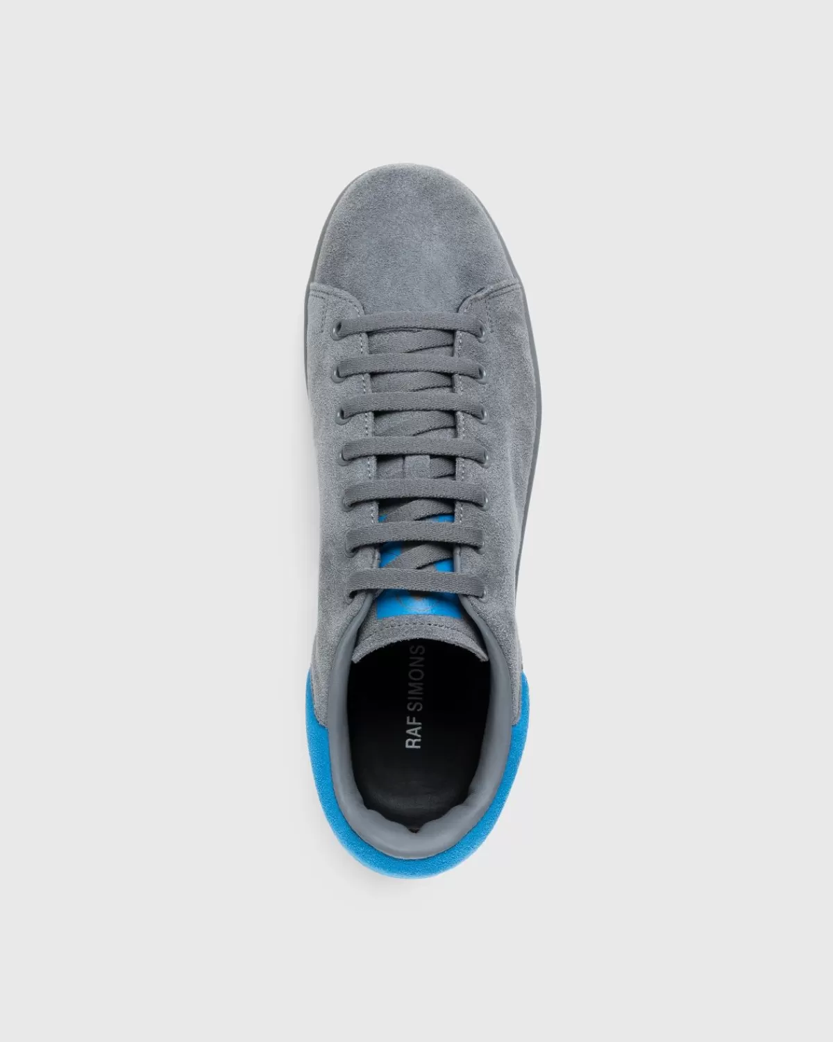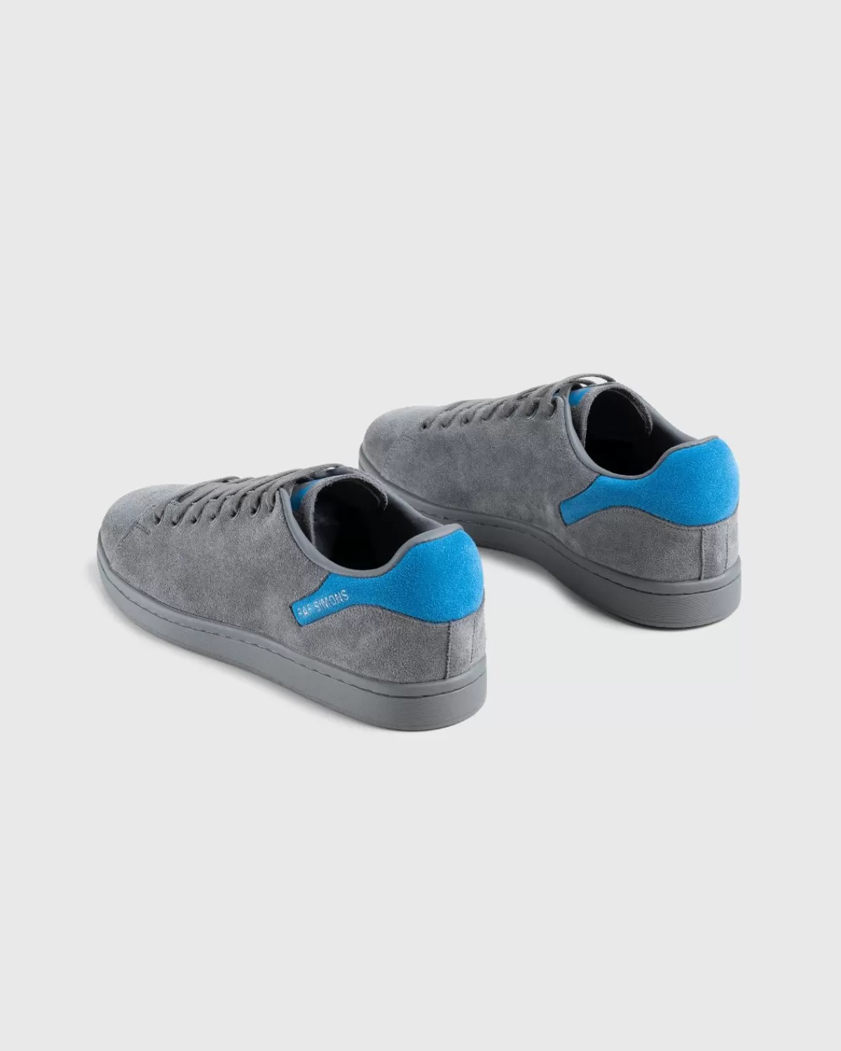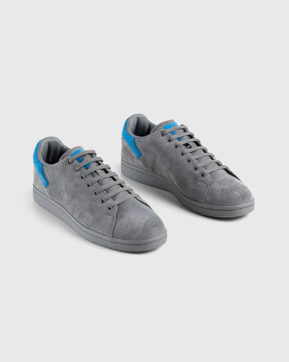 De Orion Is Raf Simons’ Luxe Versie Van Een Klassieke Tennissneaker. Deze Specifieke Versie Is Uitgevoerd In Premium Koeiensuède Aan De Bovenkant, Gecombineerd Met Een Rubberen Cupzool Eronder. Contrasterende Tong- En Hielpanelen Vallen Op Langs De Gedempte Grijze Basis, Terwijl Het Kleine Raf Simons-Logo Het Paar Subtiel Aan De Zijkant En Binnenzool Labelt.
