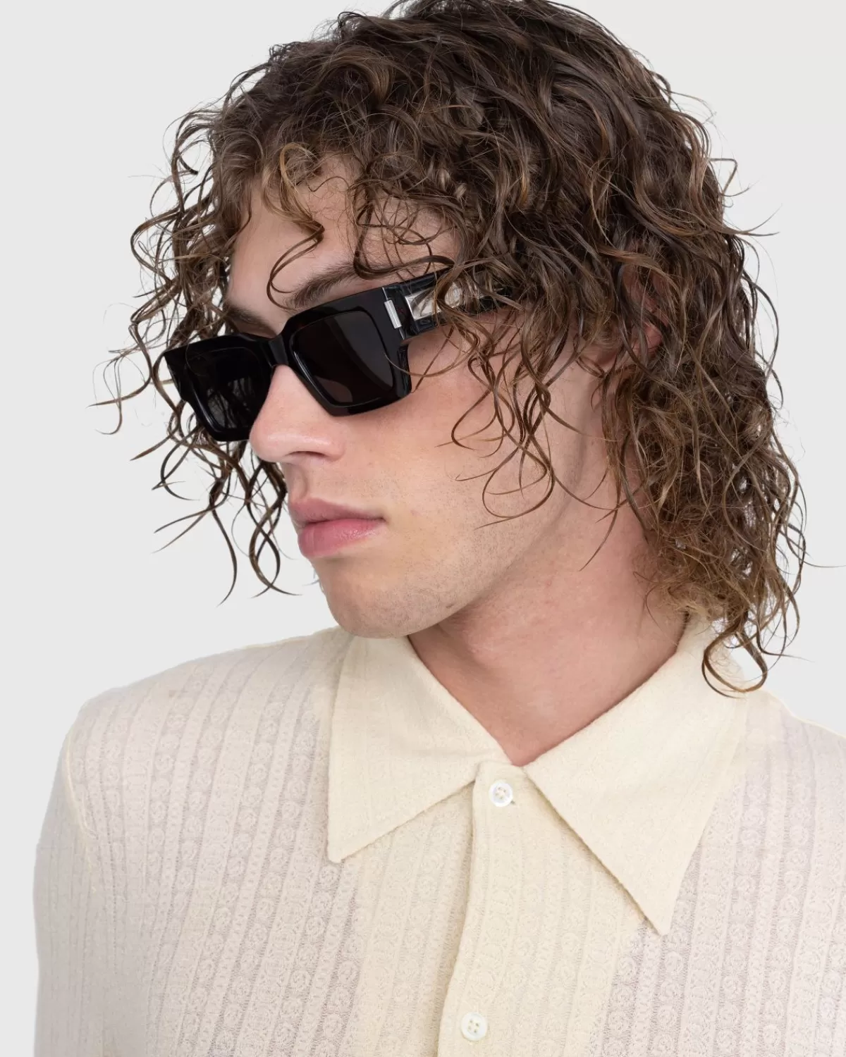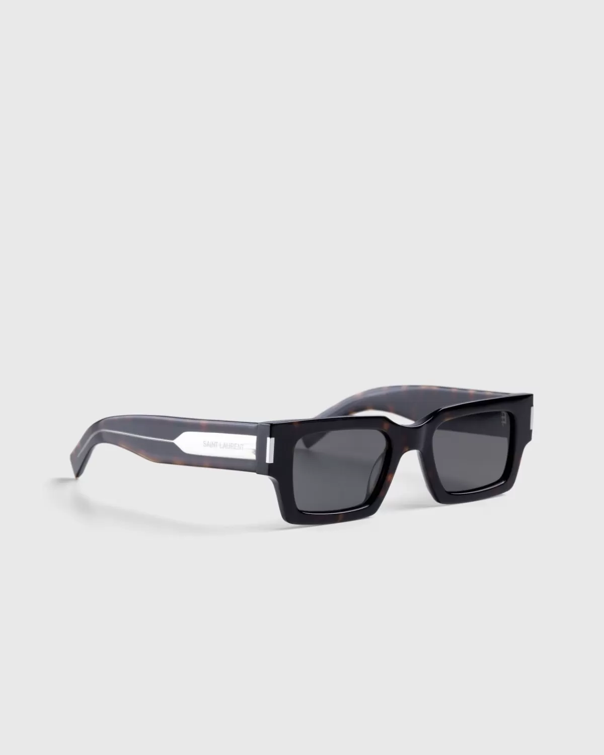 De Sl 572 Is Een Eigentijdse Brilstijl Van Saint Laurent. Dit Seizoen Komt Het Paar In Een Veelzijdige Havana/Crystal/Grey-Kleurstelling, Verfraaid Met Een Logogravure Op Elke Arm. Het Geometrische Vierkante Montuur Is Gemaakt Van Acetaat, Gecombineerd Met Getinte Nylon Lenzen.