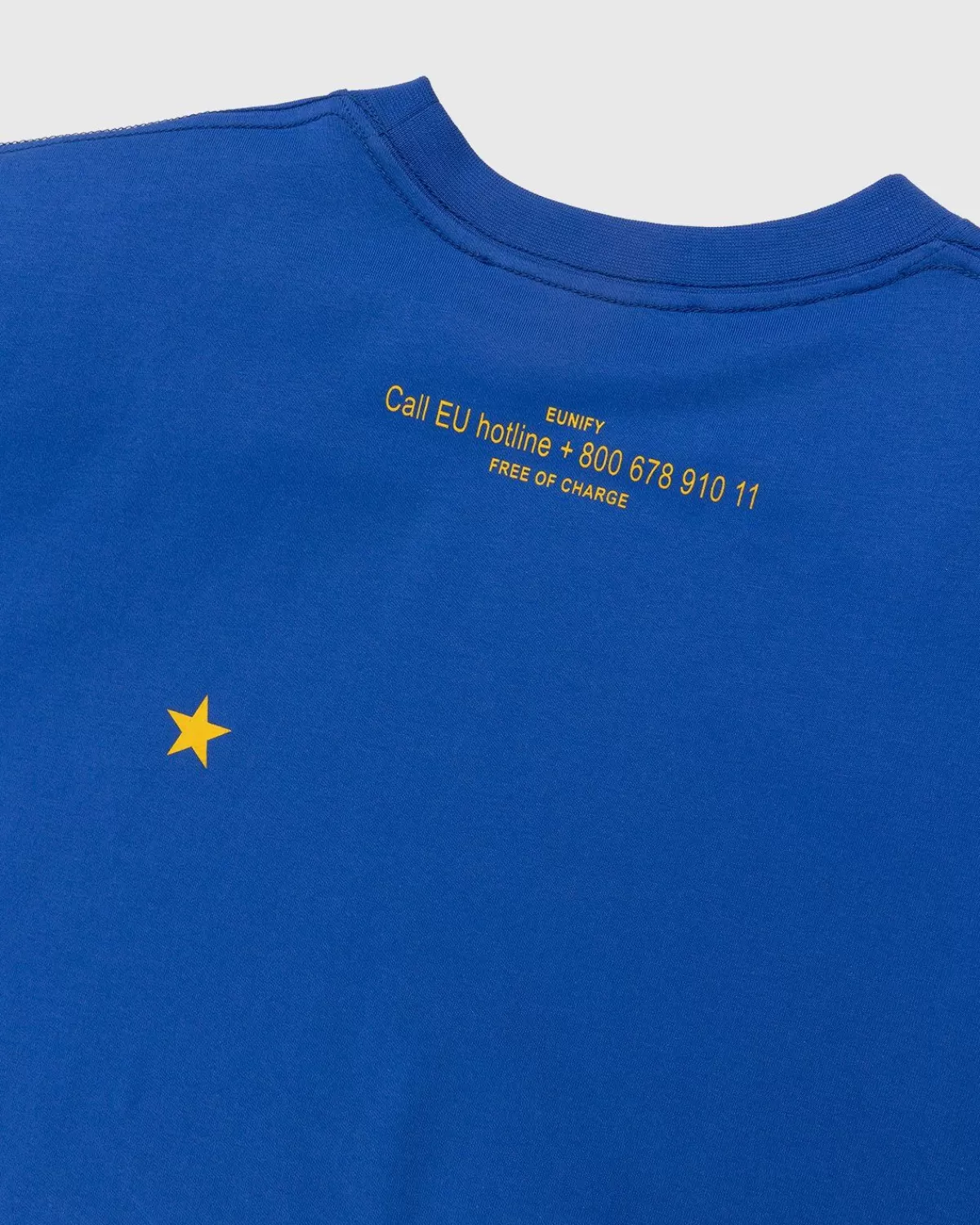 Met Zijn Eunify-Initiatief Heeft Souvenir Official De Blauw-Gele Vlag Van De Europese Unie – Een Embleem Van Vrede En Eenheid – Omgevormd Tot Een Draagbaar Gespreksonderwerp. Deze Opiniekleding, Zoals Art Director David Mallon Het Noemt, Stelt Het Label In Staat Zijn Eigen Mening Te Uiten En Vervolgens Een Krachtige Sociale Boodschap Over Te Brengen Aan Fans. Het Pro-Eu-T-Shirt Is Een Symbool Van Vrijheid En Acceptatie, Aangezien Een Enkele Ster Van De Vlag Van De Europese Unie Is Verwijderd En Op De Achterkant Van Het Katoenen Shirt Is Geplaatst, Naast Het Nummer Van De Eu-Hotline, In De Hoop Een Dialoog Op Gang Te Brengen.