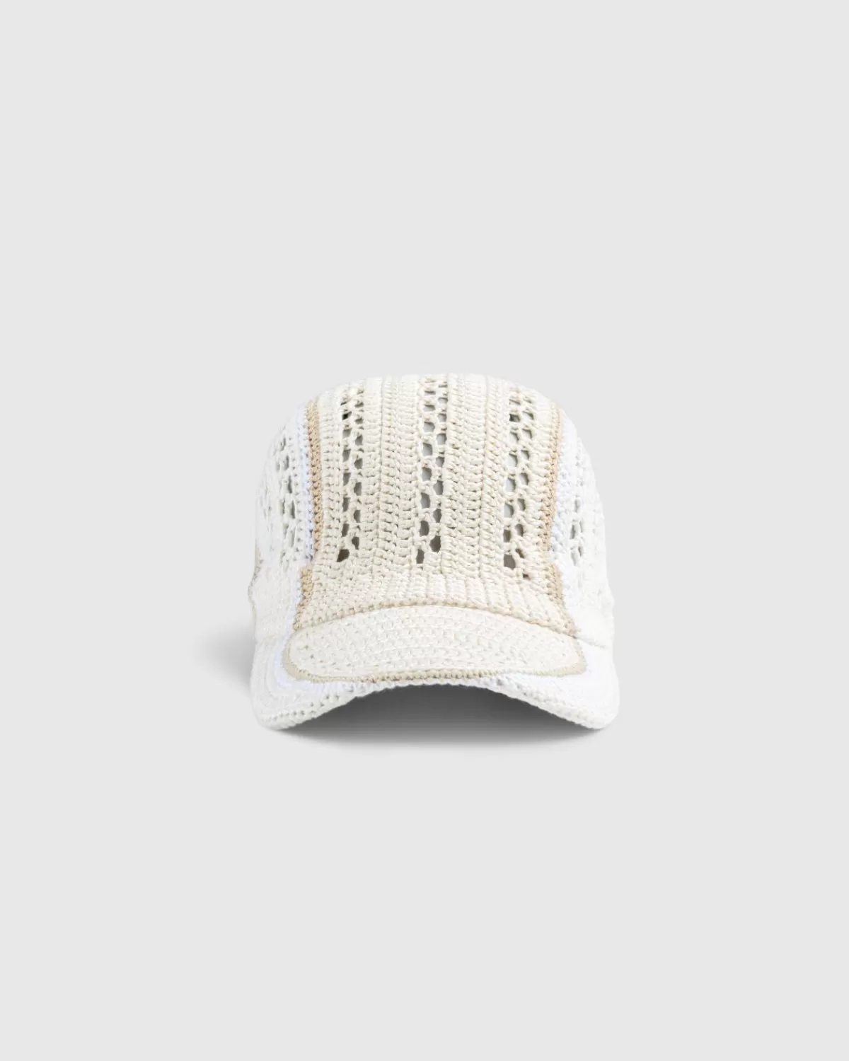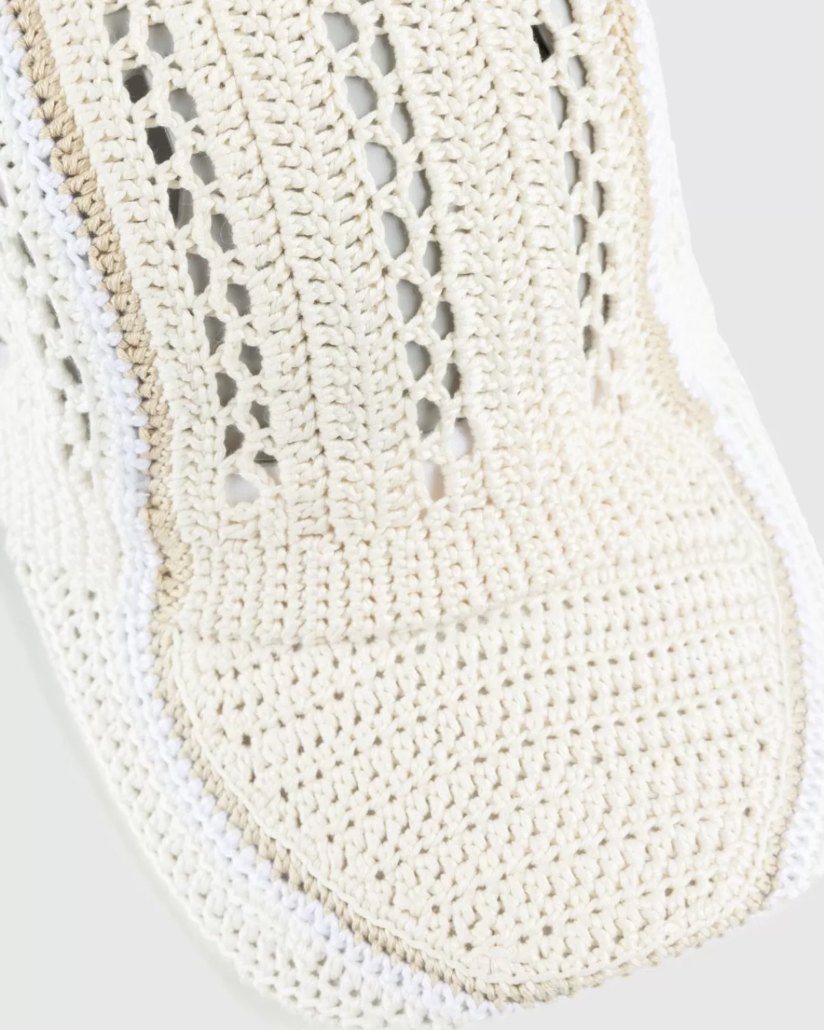 De Baseballcap Is Gemaakt Van Egyptisch Katoen, Met De Hand Gehaakt In Italië, En Heeft Geperforeerde Details En Een Contrasterende Band Aan De Zijkant. Het Italiaanse Label Ssu Maakt Gebruik Van Technische Uitrusting En Uniformen En Herschept Praktische Vormen Van Handgemaakte Breisels En Haakwerk. Het Bedrijf Voegt Een Nieuwe Context Toe Aan Traditionele Breitechnieken En Is Gespecialiseerd In Tassen En Accessoires Zoals Deze Hoed In Honkbalstijl.