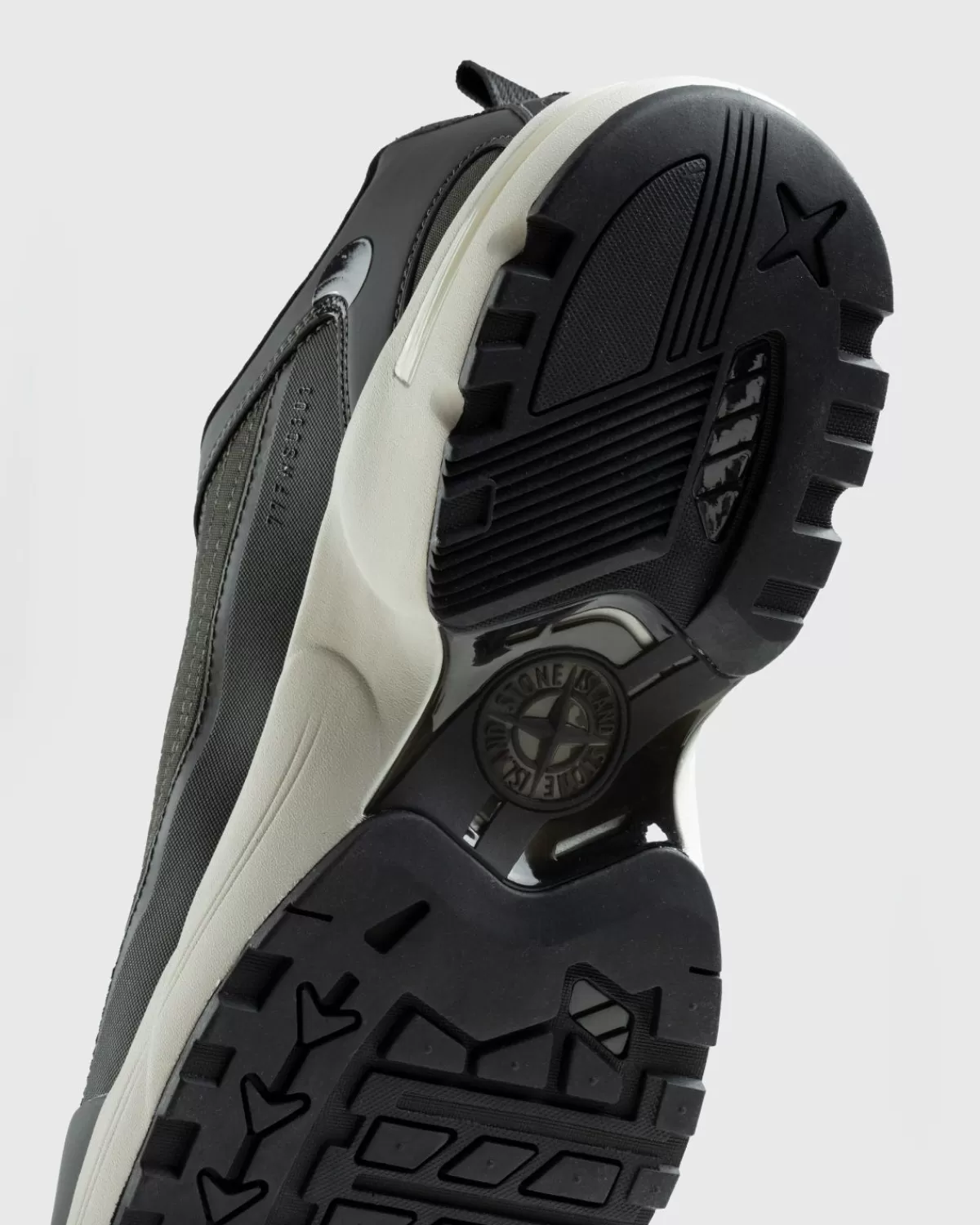 Steunend Op De Subculturele Kenmerken Van Het Merk Onderzoekt Stone Island-Schoenen De Sneakercultuur In Relatie Tot Iconische Silhouetten. The Grime Is Een Duidelijk Eerbetoon Aan Stijlen Die Gevierd Worden Door De Britse Grimecultuur. Het Door De Mens Gemaakte Stoffen Bovenwerk Van De Schoen Wordt Gecombineerd Met Eersteklas Rubberleer, Een Versterkte, Voorgevormde Militaire Neus En Een Tactisch Gelede Zool Voor Een Luxe, Gestroomlijnde Look. De Low-Top Vertegenwoordigt Een Combinatie Van Culturele Referenties En Stone Island-Elementen Uit Het Archief En Is Gemaakt Van Ambachtelijk Gestikt Nylon, Een Voorgevormde Rubberen Tong En Oogjes En Veteruiteinden Die Specifiek Verwijzen Naar De Iconische Zwarte Metalen Afwerkingen Van Het Merk.