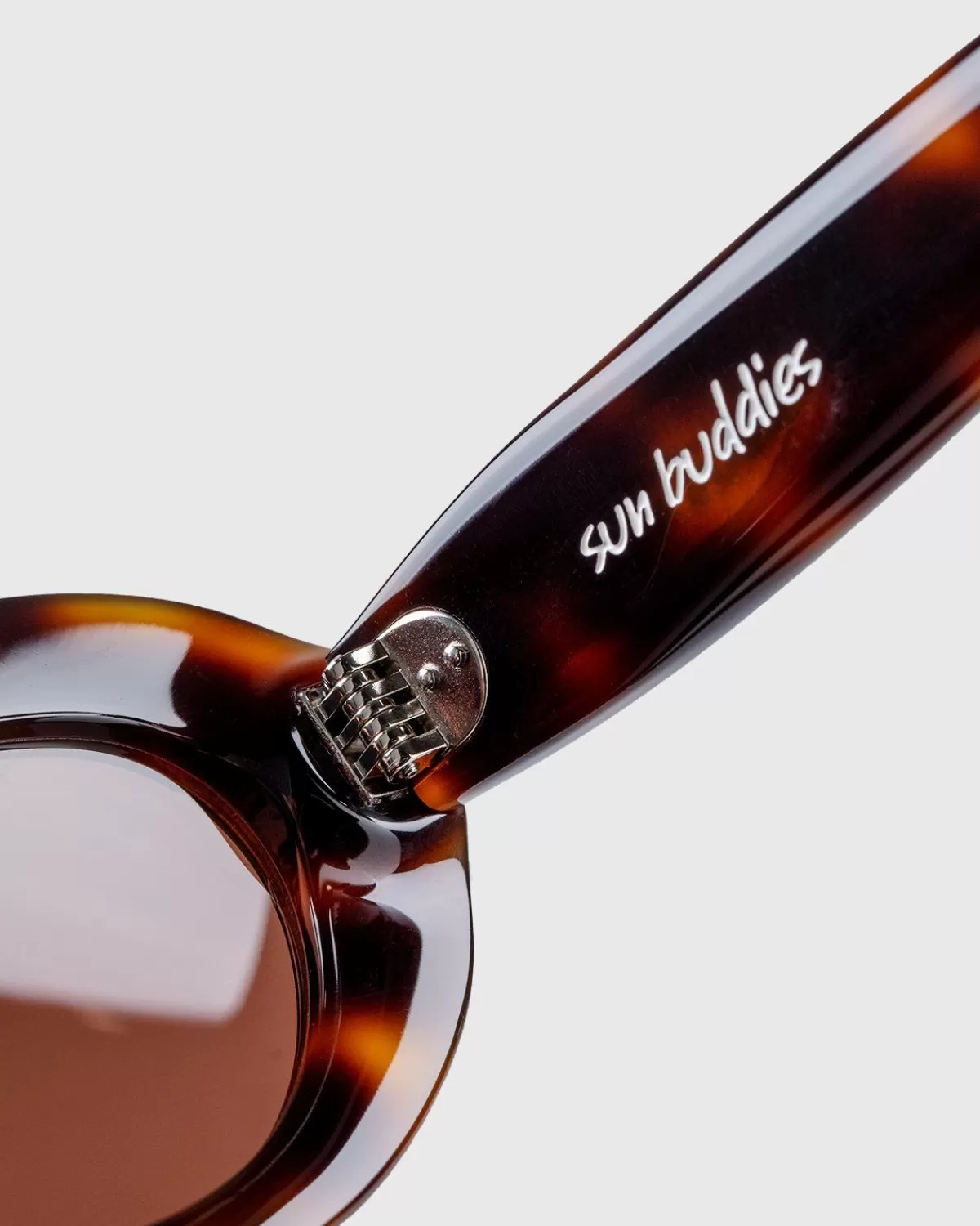 Sun Buddies Biedt Handgemaakte Italiaanse Acetaatmonturen En Superieure Carl Zeiss-Lenzen In Een Reeks Leuke, Unisex-Silhouetten. Met De Courtney Kun Je Je Innerlijke Rockster À La Kurt Cobain Kanaliseren, Met Een Jaren 90-Achtig Ontwerp Dat Weer In De Schijnwerpers Staat. Dit Paar Heeft Een Schildpadpatroon Op Het Bruin-Gele Montuur, Dat Wordt Aangevuld Met Bruine 100% Uv-Beschermde Lenzen.