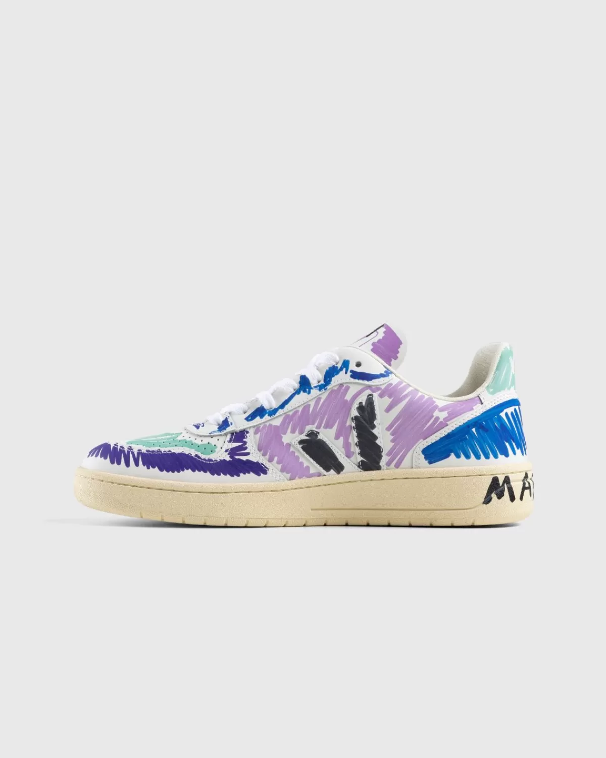Met Creativiteit En Originaliteit Op De Voorgrond Ontketenen Veja En Marni Hun Tweede Samenwerking, Waarmee Ze Een Nieuwe Interpretatie Bieden Aan Hedendaagse Schoenen. De Componenten Van Elk Paar Zijn Met De Hand In Elkaar Gezet, Waardoor De Rechterschoen Iets Anders Is Dan De Linkerschoen Om Uiteindelijk Het Gevoel Van Originaliteit Te Onderstrepen. Op Het Bovenwerk Van De Sneaker Is Gebruik Gemaakt Van Eersteklas Runderleer, Dat Is Versierd Met Krabbels In Doe-Het-Zelf-Stijl Voor Een Onderscheidende Look. Deze Nieuwe Veja X Marni-Levering Is Een Voorbeeld Van Marni’S Toewijding Om Individualiteit Te Vieren Door Middel Van Persoonlijke Creativiteit.